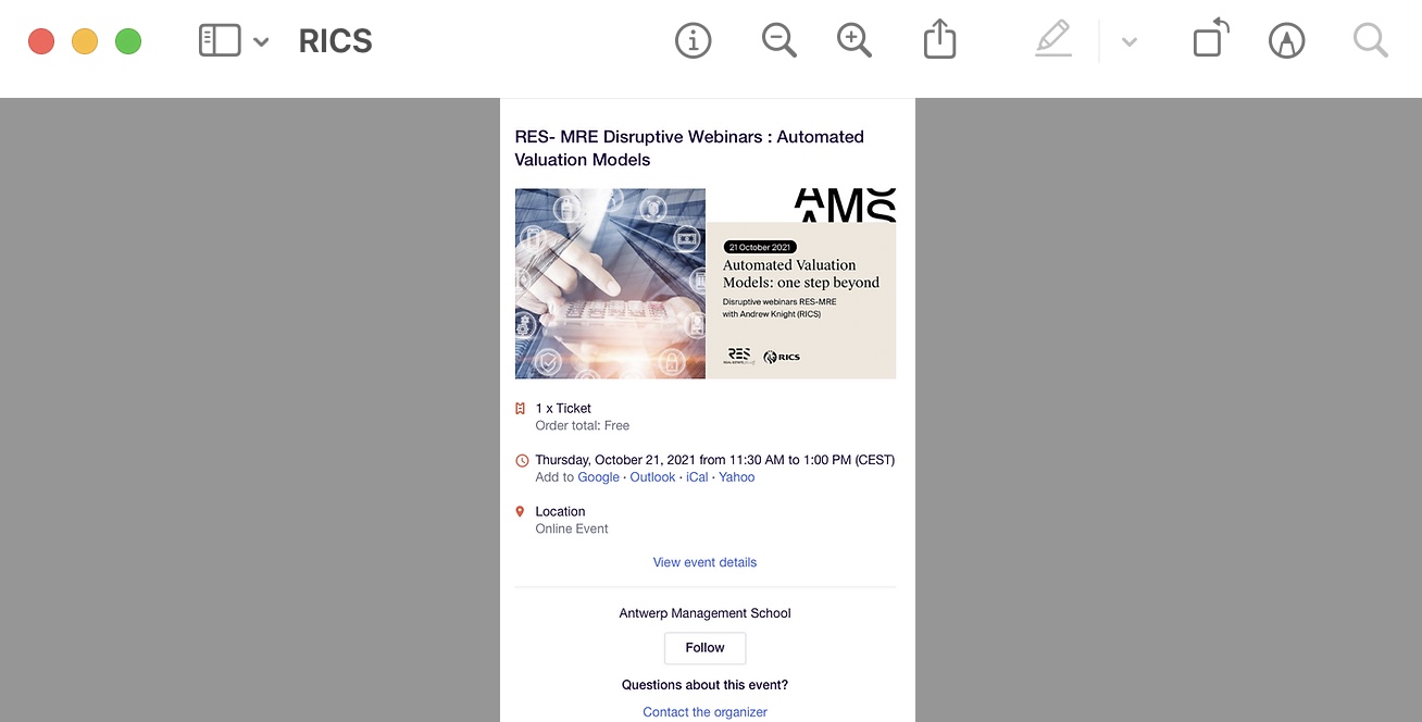 Wat: Webinar: RES - MRE automated Valuation Models RICS