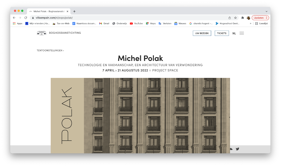 Op vrijdag 15 april ging ik samen met een enkele medestudenten villa Empain gaan bezoeken. Wij gingen hier naartoe voor de voorstelling over de bekende architect, Michel Polak. De heer Polak is voornamelijk gekend voor zijn fantastische ontwerp voor het Plaza hotel. Je kon er het levensverhaal van Michel Polak gaan bewonderen. Verschillende plannen waren opgehangen en stukken die hij gebruikt had werden tentoongesteld. Je kon ook af en toe gaan kijken en luisteren naar experten die vragen gingen gaan beantwoorden over zijn werken. Het was bewonderingwaardig om alle originele plannen te kunnen bekijken. Wat ik ook enorm leuk vond aan deze tentoonstelling is dat het plaatsvond op een plek dat toch wel uniek is. Villa Empain is ook een van de meesterwerken van Michel Polak. Je kon zo de plannen gaan bewonderen, maar ook eens rond een van zijn meesterwerken heen wandelen. Het gebouw is uitermate speciaal. Er zijn drie verdiepingen waarvan twee boven de grond en één onder de grond (waar de tentoonstelling plaatsvond). Buiten bevond zich een ingewerkt zwembad omringd door planten en een terras. De villa was duidelijk gebouwd voor een krachtig man.